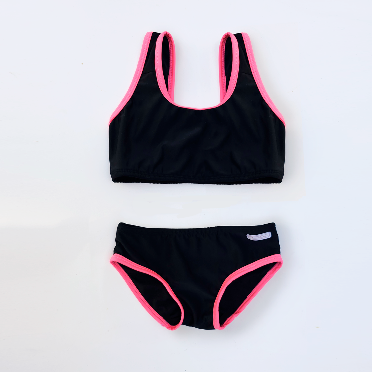Bikini estilo deportiva fluo. Completamente forrada por dentro, con vivos de color fucsia.