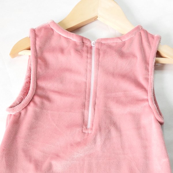 Jumper confeccionado en plush super-soft rosa, con bolsillos con volados y cierre en la espalda. Disponible del T2 al T14.